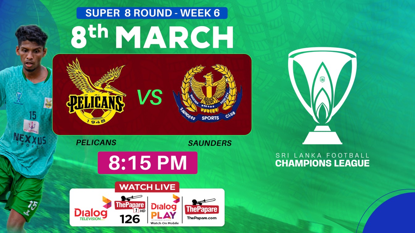 Pelicans SC will take on Saunders SC in the Week 6 in Super 8 round of the Sri Lanka Football Champions League 2025/26 on 08th March at the Racecourse Stadium, Colombo.