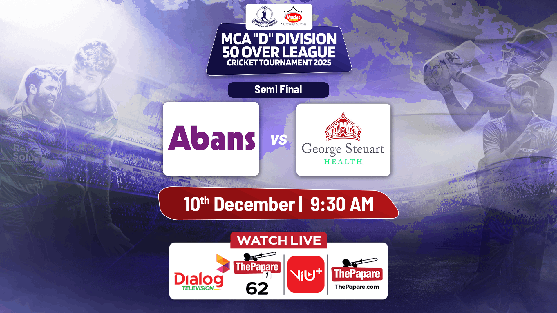 Abans Group will face George Steuart Health in the first semi-final of the MCA ‘D’ Division 50-Over League Cricket Tournament 2025 on the 10th of December at the MCA Grounds, Colombo.