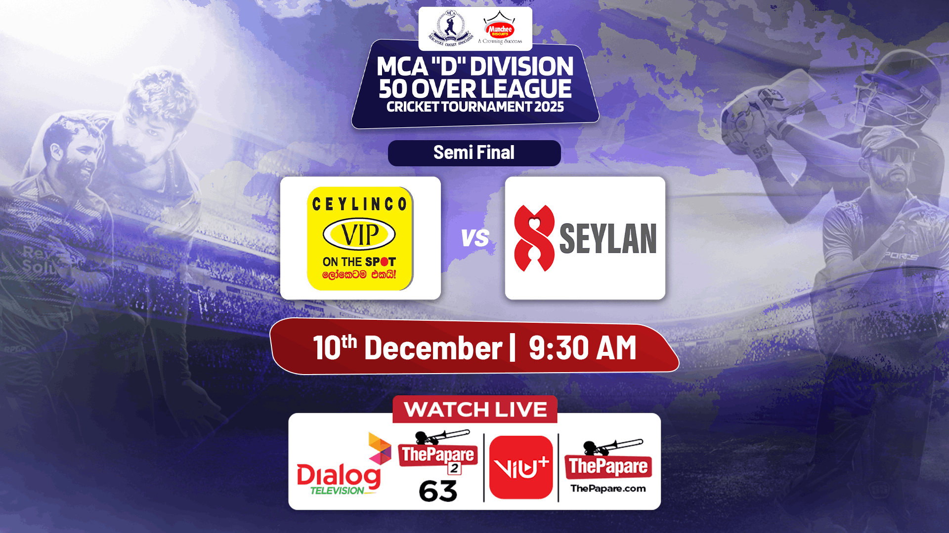 Ceylinco Insurance will face Seylan Bank in the second semi-final of the MCA ‘D’ Division 50-Over League Cricket Tournament 2025 on the 10th of December at the BOI Grounds, Katunayake.